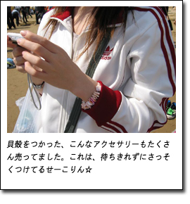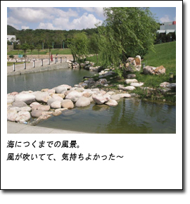 2日目は、快晴のなか、タクシーを飛ばしに飛ばし(最高110キロくらいでてた、、、)周山に行きました。行きの長距離バスでお姉さんが教えてくれたのですが、この日周山は中国の明星(スター)が勢ぞろいする日だったらしく、入り口は人であふれかえっていました。さっそくチケットを買って中に入ると、、、、何だろここは〜。日本で言えばディズニーランドなみの入園料なのに、特に何もない!大きい自然公園みたいな感じです。海産物が有名なので、いろんな所でイカや海老を焼いてる良い匂いがします。そして、ぼんやり歩いていると、いきなり海!!みんなきゃーきゃーです☆☆横には、砂浜の砂で作った色んな作品が!映画の再現や結婚式の様子が多かったかな。お決まりのタイタニックでは、そのレオ様のあまりの似てなさに大笑いし、何かと楽しい1日でした。それにしても、良い天気だったな〜。みんな、真っ赤になって帰ったのは、言う間でもありません。