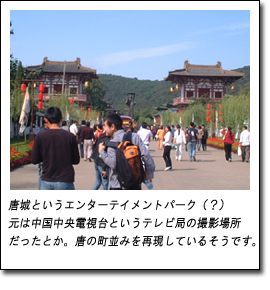 無錫とは・・・中国は江蘇省で、上海から快速の汽車で約1時間40分のところにあります。太湖という中国で4番目に大きいらしい湖があって、北京と杭州を結ぶ京杭運河など多くの運河があり、水郷の町であるそうです。かつては錫がたくさん取れたけれど、漢代に撮り尽くされてしまったことからこの名前になったそうな。(「歩き方」より。)私たちは目いっぱい遊ぼうと、上海駅を朝6時発の電車にしました。無錫に行くにはかの有名な蘇州を通り越していきます。車窓から見る景色は、私たちがいつも目にしているようなビル群ではなく、のどかな風景が広がっていて、のんびりした気分でした。無錫に着いて、GWということで道が込んでいるらしいので、突如1周遊のツアーに参加することにしました。1日130元くらいで、ガイド付きバスつきでいろんなところを回ってくれましたサクサク回るのでなかなかゆっくりは見て回れなかったけれど、唐城というところに行ったり、元頭渚(げんとうしょ)公園を見て回ったり、太湖の遊覧船に乗ったりと無錫を思い切り満喫した気がします。初めて訪れて日帰りだったら、バスの乗り方もわかりにくかったりするので、ツアーに参加するのはいい手ではないかと思います。