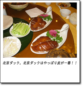 そしてこの夜の夕食は北京ダック!!メインが出るまでに、お腹がいっぱいになるほどの料理が出てきたため、もう北京ダック入らない状態だったのですが、メインが来た瞬間、みんな北京ダックに飛びつきました(笑)北京ダックはとてもおいしかったです!あの皮のパリパリ感と北京ダックのたれがコラボするとたまらない!!(>_<)本当においしかったです(≧▽≦)
